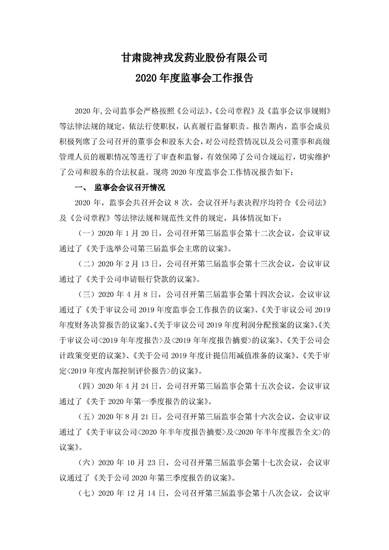 2020年度監(jiān)事會(huì)工作報(bào)告