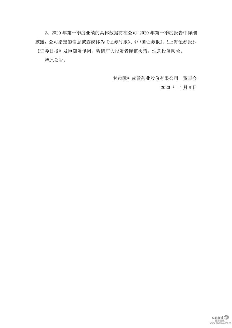 2020年第一季度業(yè)績預告