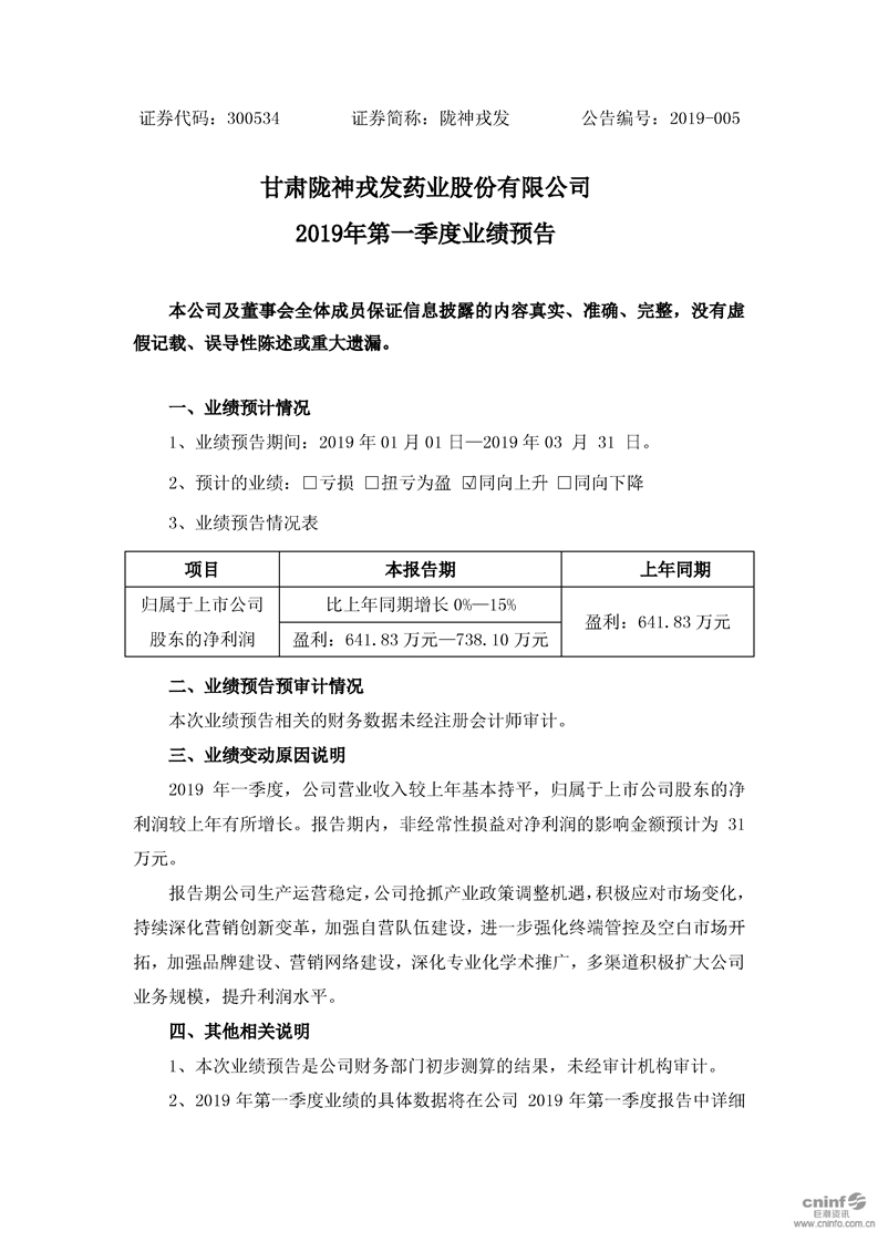 2019年第一季度業(yè)績(jī)預(yù)告