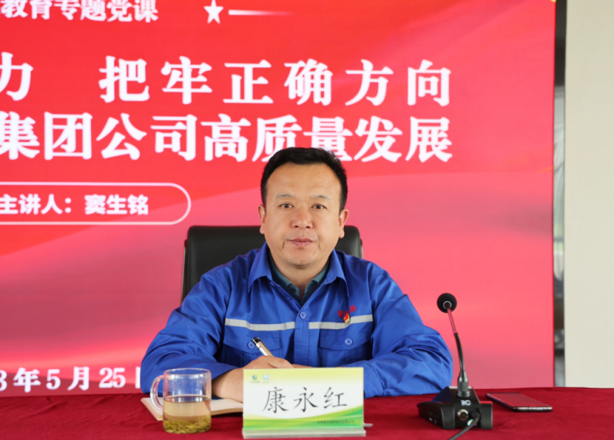 為深入貫徹落實(shí)習(xí)近平新時(shí)代中國(guó)特色社會(huì)主義思想和黨的二十大精神,按照集團(tuán)公司黨委關(guān)于學(xué)習(xí)貫徹習(xí)近平新時(shí)代中國(guó)特色社會(huì)主義思想主題教育的部署安排,5月25日下午,集團(tuán)公司黨委副書記、總經(jīng)理竇生銘深入普安公司一線,以《感悟思想偉力 把牢正確方向 堅(jiān)定不移推動(dòng)集團(tuán)公司高質(zhì)量發(fā)展》為題,講授了主題教育專題黨課。黨課由普安公司黨委書記、董事長(zhǎng)康永紅主持。普安公司領(lǐng)導(dǎo)班子成員、全體干部職工聆聽黨課。
