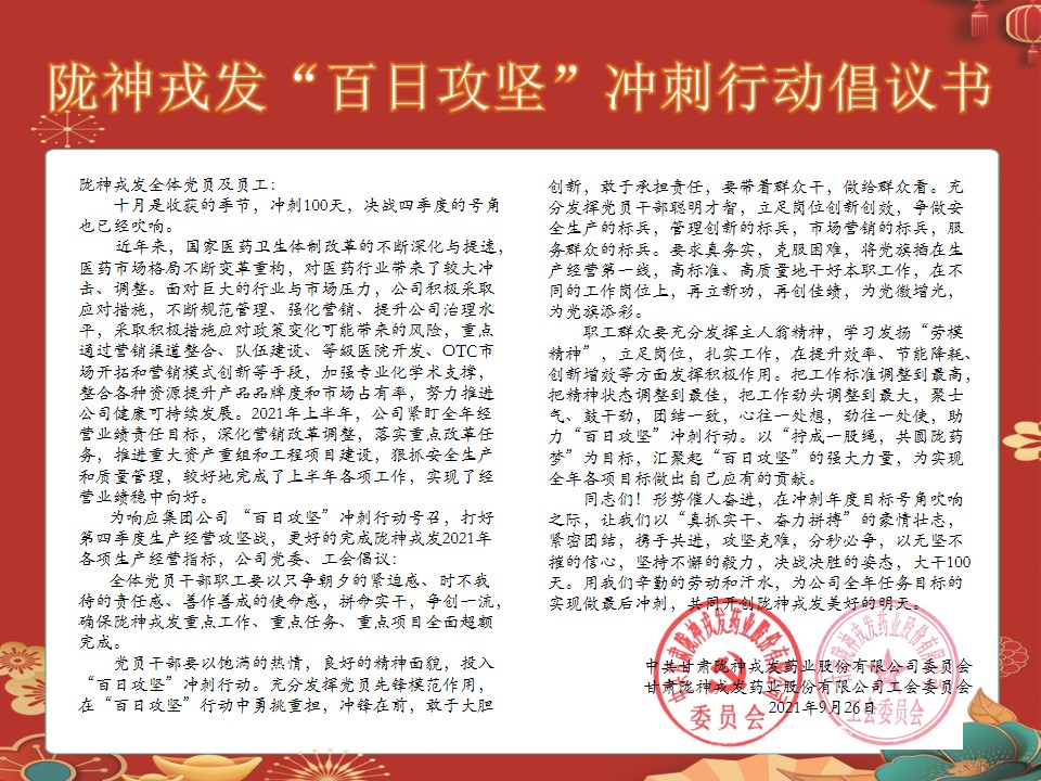隴神戎發(fā)“百日攻堅(jiān)”沖刺行動(dòng)倡議書(shū)