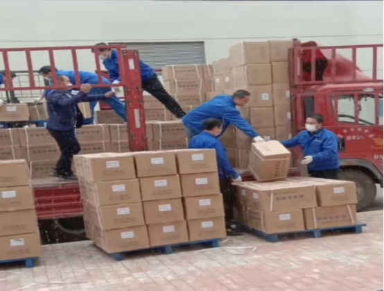 圖說:黨員帶頭,保證生產(chǎn)物料的供應入庫。