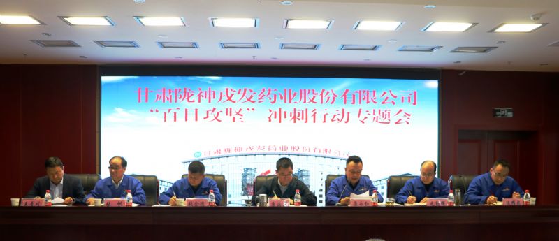 為進一步落實集團公司第29次黨委會會議精神,持續(xù)推進公司“百日攻堅”沖刺行動各項任務(wù)落地見效,確保2021年重點工作、重點任務(wù)、重點項目全面完成。2021年10月15日上午,隴神戎發(fā)組織公司全體領(lǐng)導(dǎo)班子、班組長以上管理人員、部分職工代表及所屬企業(yè)主要負(fù)責(zé)人召開了“百日攻堅”沖刺行動專題工作會議。會議由公司董事、黨委書記、總經(jīng)理康永紅主持,甘肅藥業(yè)集團黨委委員、副總經(jīng)理兼隴神戎發(fā)董事長康海軍參加會議。