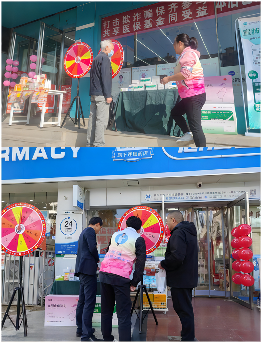 活動期間,學(xué)術(shù)部及三元醫(yī)藥OTC部的各位同事分工協(xié)作,在各藥房門口放置藥品展示臺,來往行人顧客紛紛停下腳步,表示想轉(zhuǎn)一轉(zhuǎn)我們的愛心“大轉(zhuǎn)盤”,參加小游戲,學(xué)習(xí)中醫(yī)藥小知識。