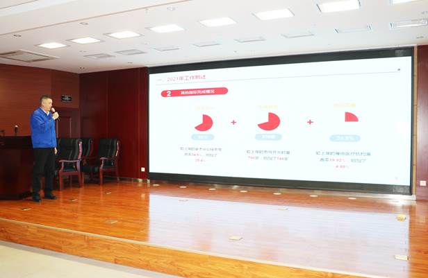 公司營銷副總監(jiān)史偉代表營銷中心對2021年銷售工作進行全面總結(jié)分析,并就2022年銷售計劃和保障措施向大會進行了報告。