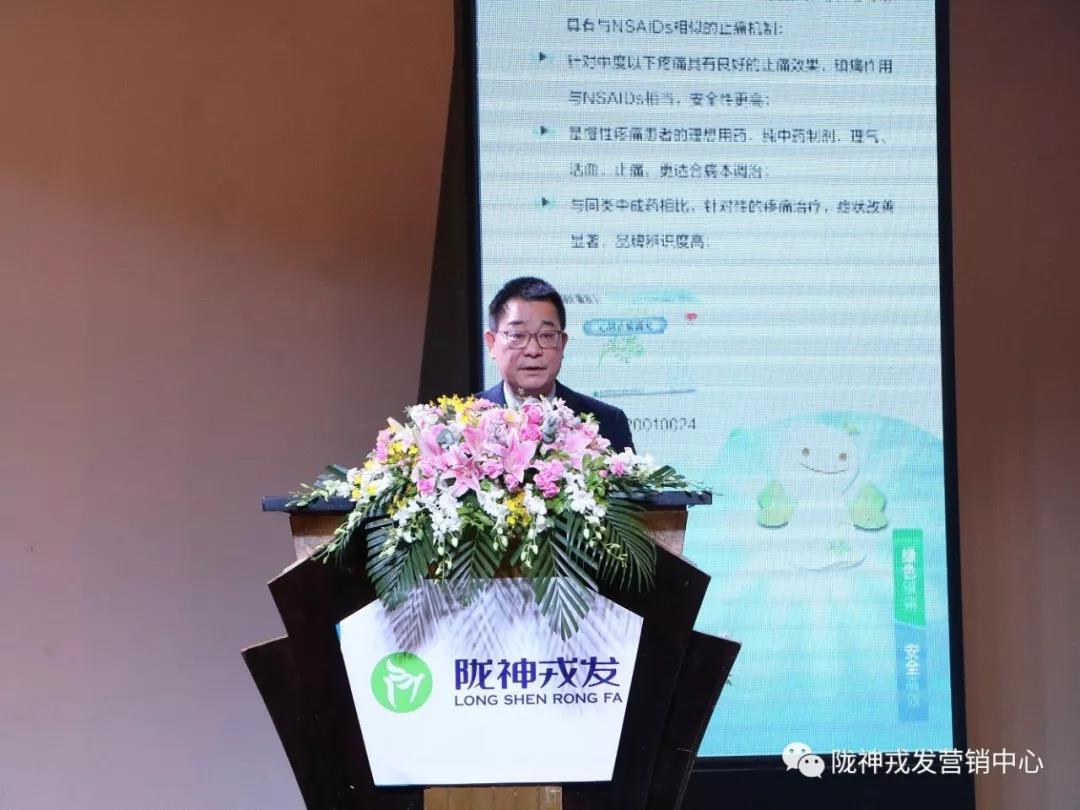 甘肅隴神戎發(fā)藥業(yè)股份有限公司副總經(jīng)理錢雙喜先生針對元胡止痛滴丸二次開發(fā)研究過程及結(jié)果向在座的專家及客戶做了介紹展示。