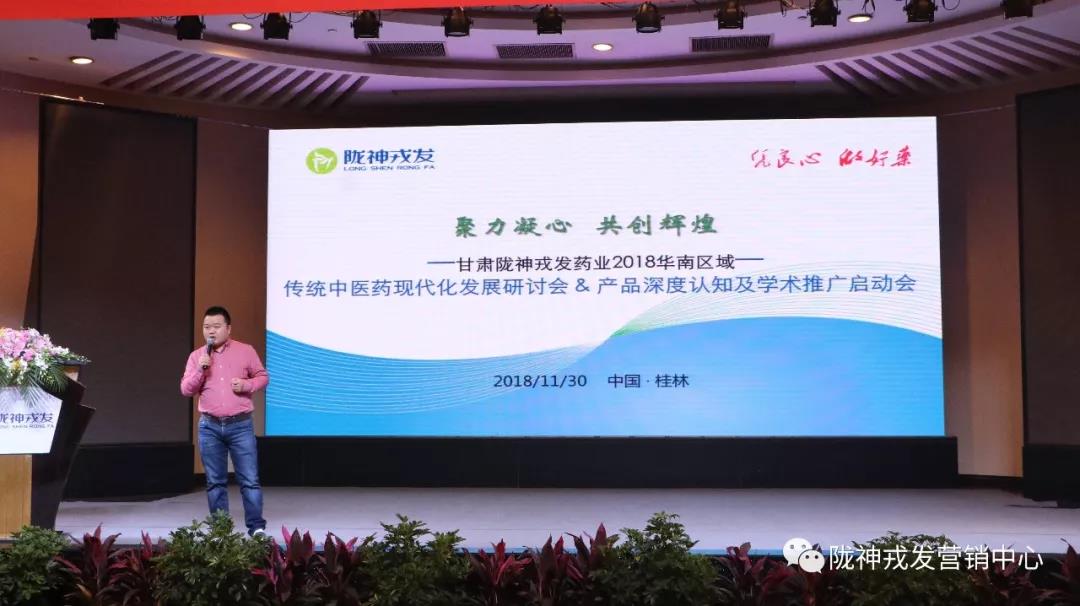 2018年11月30日,甘肅隴神戎發(fā)藥業(yè)股份有限公司在自古享有“山水甲天下”之美譽的桂林,隆重舉行了“華南大區(qū)傳統(tǒng)中醫(yī)藥現(xiàn)代化發(fā)展之路研討會暨產(chǎn)品深度認知學(xué)術(shù)推廣啟動會。