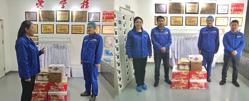 4月3日上午,隴神戎發(fā)黨委委員楊俊萍、總經(jīng)理助理孫波代表公司黨委來到生產(chǎn)車間對將在清明節(jié)期堅守崗位的生產(chǎn)車間一線人員表示慰問,向他們送去公司的關(guān)懷和溫暖。