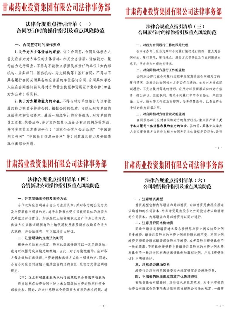 依法合規(guī)是全面落實(shí)依法治企戰(zhàn)略部署的客觀需求,也是國(guó)有企業(yè)依法推進(jìn)治理體系及治理能力現(xiàn)代化的必然選擇。甘肅藥業(yè)集團(tuán)始終堅(jiān)持以習(xí)近平新時(shí)代中國(guó)特色社會(huì)主義思想為指導(dǎo),認(rèn)真貫徹落實(shí)習(xí)近平法治思想,緊緊圍繞中心發(fā)展大局,找定位、強(qiáng)對(duì)標(biāo),創(chuàng)新開展“6+1”行動(dòng),切實(shí)推進(jìn)合規(guī)管理各項(xiàng)工作走深走實(shí)。