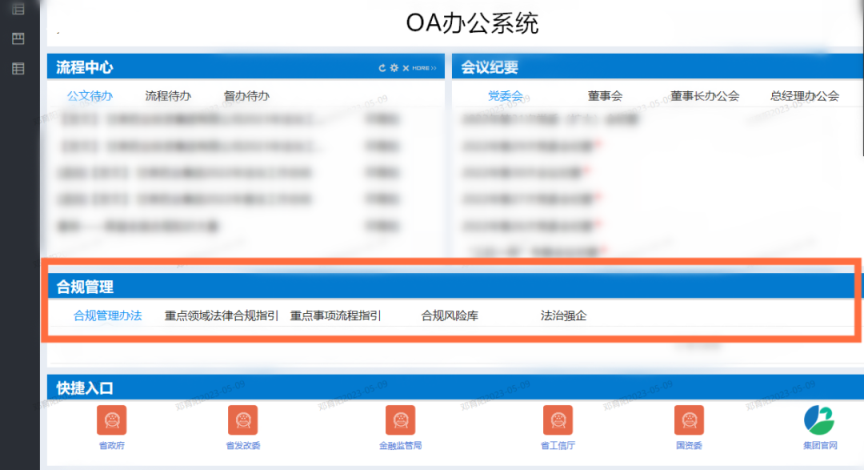 “1個(gè)平臺(tái)”——OA合規(guī)信息綜合平臺(tái)