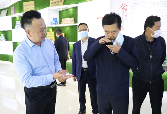 王奮彥一行在甘肅藥業(yè)集團黨委書記、董事長魏陽的陪同下,饒有興致地參觀了公司制劑大樓的產品陳列廳,詳細了解了甘肅藥業(yè)集團的組建背景、產業(yè)構成,以及隴神戎發(fā)的發(fā)展歷史、科技研發(fā)、主導產品及市場銷售情況。魏陽董事長就隴神戎發(fā)主打產品元胡止痛滴丸的市場規(guī)模和劑型特點向調研組進行了詳細介紹,并結合公司近期推出的元胡止痛滴丸婦科“痛經(jīng)”單病種全新包裝,以及以甘肅道地藥材黃芪和當歸為主要原料研制而成的黃芪當歸膠囊將逐步拓寬線上銷售等一系列創(chuàng)新舉措,與調研組進行了深入交流。