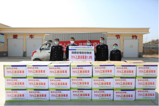 向蘭州出入境邊防檢查站捐贈(zèng)75%乙醇消毒液