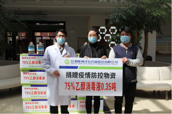 3月19日,甘肅隴神戎發(fā)藥業(yè)股份有限公司向蘭州出入境邊防檢查站捐贈(zèng)75%乙醇消毒液1.3噸,向甘肅省聽(tīng)力語(yǔ)言康復(fù)中心捐贈(zèng)75%乙醇消毒液0.35噸,用于疫情防控消毒工作。