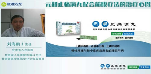 交流會(huì)第四場(chǎng)邀請(qǐng)到甘肅省醫(yī)學(xué)疼痛學(xué)會(huì)分會(huì)常務(wù)委員、甘肅省人民醫(yī)院疼痛科副主任劉海鵬教授,劉主任將臨床中筋膜療法與元胡止痛滴丸配合使用的治療方法及治療心得進(jìn)行一一講解。