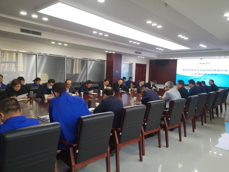 10月8日下午,隴神戎發(fā)召開第三季度經營工作分析會,甘肅藥業(yè)集團黨委委員、副總經理胡寧、運營管理部部長李建軍蒞臨會議。甘肅藥業(yè)集團黨委委員、副總經理兼隴神戎發(fā)董事長康海軍,隴神戎發(fā)領導班子成員、各子公司負責人、營銷中心各區(qū)域經理及相關部門負責人參加了會議。