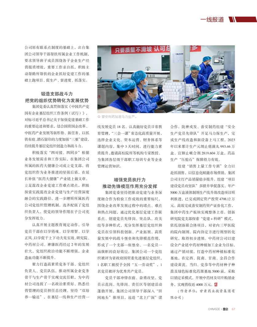 《國企》雜志:甘肅藥業(yè)集團(tuán)“三力齊發(fā)”推進(jìn)黨建工作與生產(chǎn)經(jīng)營互促共進(jìn)