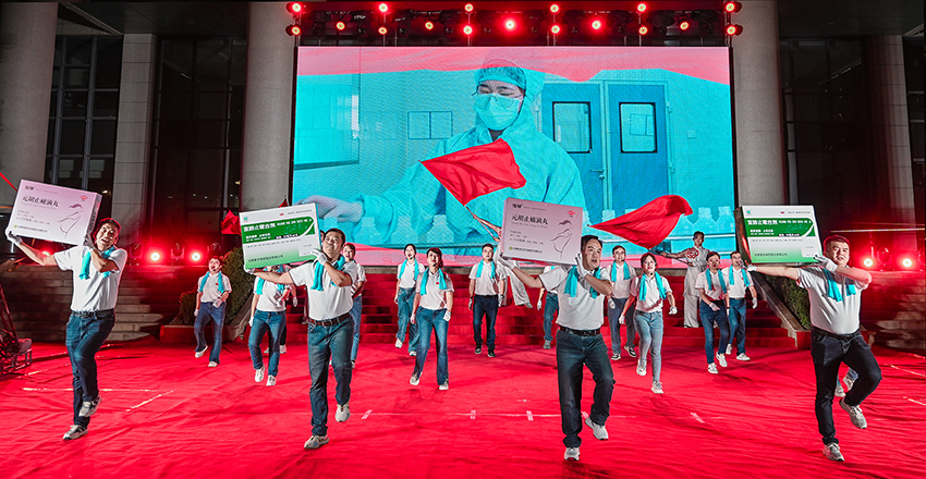 中秋逢國慶,天涯共此時,9月27日,正逢雙節(jié)來臨之際,伴隨著秋高氣爽的傍晚,在甘肅藥業(yè)投資集團、甘肅隴神戎發(fā)藥業(yè)股份有限公司榆中廠區(qū),開展了甘肅藥業(yè)集團“永遠跟黨走•唱響新時代”迎“國慶”文藝匯演活動,豐富職工精神文化生活的同時,也展示了甘肅藥業(yè)投資集團廣大干部職工濃厚的愛國愛黨積極向上的政治素養(yǎng)和高尚的紅色情懷?;顒釉谝皇诅H鏘有力的“國際歌”大合唱中緩緩拉開序幕。