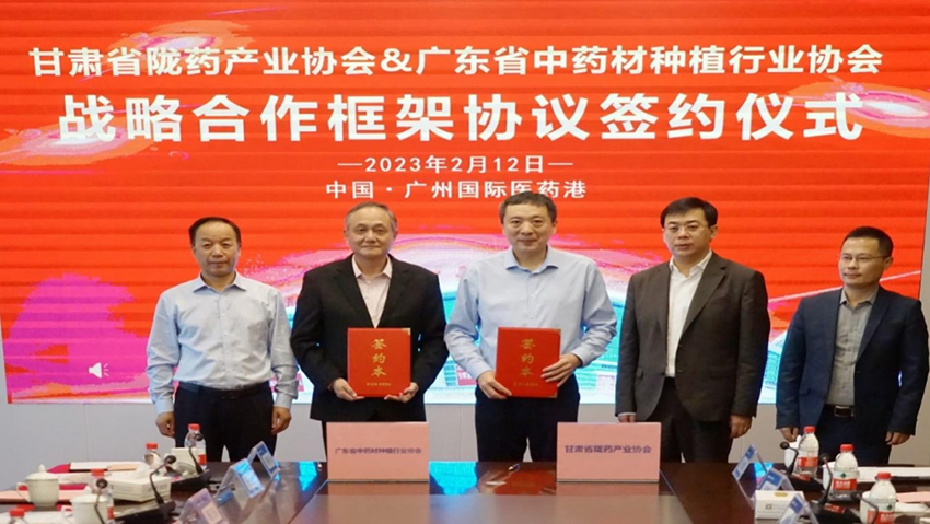 活動(dòng)進(jìn)入簽約和揭牌環(huán)節(jié),元胡止痛滴丸、宣肺止嗽合劑廣東省億元市場(chǎng)項(xiàng)目簽約,甘肅省隴藥產(chǎn)業(yè)協(xié)會(huì)與廣東省中藥材種植行業(yè)協(xié)會(huì)戰(zhàn)略合作框架協(xié)議簽約,甘藥集團(tuán)健康科技(廣州)有限公司揭牌依序開展。