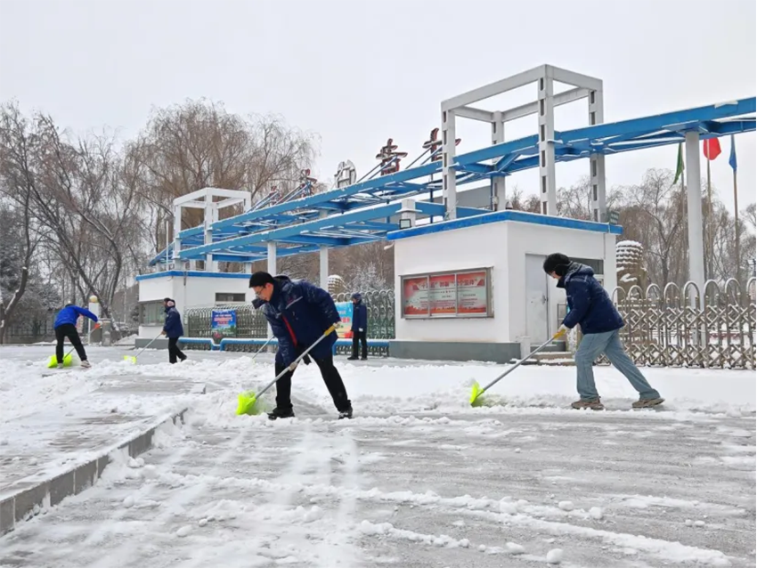 公司領(lǐng)導(dǎo)班子成員以身作則,拿起鐵鍬、掃帚,帶領(lǐng)分管部門員工奔赴分擔(dān)區(qū)域。各黨支部書記、部門負責(zé)人沖鋒在前,黨員、團員青年踴躍參與,大家不畏嚴寒、分工協(xié)作,全力清理主干道、倉庫通道、辦公樓前、食堂周邊及停車場等重點區(qū)域積雪。掃雪現(xiàn)場氣氛熱烈,叮叮當(dāng)當(dāng)?shù)溺P雪聲與歡聲笑語交織。有的用力鏟除壓實冰層,有的仔細清掃殘余碎雪,有的負責(zé)轉(zhuǎn)運積雪。老員工經(jīng)驗豐富,負責(zé)指導(dǎo)安全除冰;年輕員工體力充沛,主動承擔(dān)重活。大家默契配合,在寒冷天氣中干得滿頭大汗,廠區(qū)各主干道和關(guān)鍵連接通道迅速恢復(fù)暢通,為物流車輛通行和員工安全行走創(chuàng)造了條件。