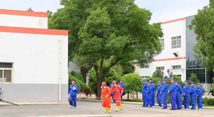 “報告!乙醇罐區(qū)10號儲罐出口管線泄漏,遇靜電引發(fā)火情,火勢正向相鄰罐區(qū)蔓延!罐區(qū)2名巡檢人員被困!”6月24日下午15時21分普安制藥廠區(qū)內(nèi)警報驟響,一場以“查隱患、強應(yīng)急、保安全”為主題的2025年“人人講安全 個個會應(yīng)急——查找身邊安全隱患”系列活動實戰(zhàn)演練正式啟動。公司安全管理部聯(lián)合提取車間及涼州區(qū)消防中隊,約80名員工參與。一場“全鏈條、全要素、全場景”的安全應(yīng)急大考就此展開。