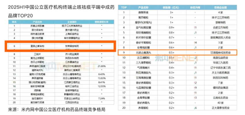 市場(chǎng)認(rèn)可度的持續(xù)提升成為企業(yè)發(fā)展的有力佐證。2024年公司成功入選“2023年度中國(guó)中藥企業(yè)TOP100排行榜”,位列第71位,躋身全國(guó)中藥企業(yè)第一梯隊(duì);核心產(chǎn)品宣肺止嗽合劑憑借過硬品質(zhì)與市場(chǎng)表現(xiàn),榮登“2024中國(guó)創(chuàng)新藥銷售企業(yè)排行榜(中藥)TOP20”第7位,同時(shí)躋身多項(xiàng)終端市場(chǎng)TOP20榜單;另一核心產(chǎn)品元胡止痛滴丸也在公立醫(yī)療機(jī)構(gòu)終端中成藥丸劑、胃藥等細(xì)分領(lǐng)域穩(wěn)居前列。截至2025年,核心產(chǎn)品累計(jì)覆蓋等級(jí)醫(yī)院主打產(chǎn)品元胡止痛滴丸和宣肺止嗽合劑等級(jí)醫(yī)院覆蓋分別達(dá)到2800余家、2000余家,兩大核心產(chǎn)品的市場(chǎng)占有率和核心競(jìng)爭(zhēng)力穩(wěn)步提升,成為“隴藥”走向全國(guó)的標(biāo)桿產(chǎn)品。