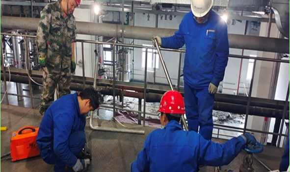 此次生產(chǎn)線改造項(xiàng)目,面對改造時間緊、任務(wù)重的雙重挑戰(zhàn),提取車間與設(shè)備工程部、設(shè)備生產(chǎn)廠家緊密對接,提前規(guī)劃工藝流程圖、嚴(yán)謹(jǐn)設(shè)計線路管道、精密測繪對接位置,確保設(shè)備從運(yùn)輸?shù)桨惭b各個環(huán)節(jié)有條不紊的進(jìn)行。同時,在設(shè)備安裝過程中始終把安全生產(chǎn)放在第一位,在安全環(huán)保部的全程指導(dǎo)監(jiān)督下,嚴(yán)格按照《安全生產(chǎn)法》做好隔離措施和安全防護(hù),確保施工現(xiàn)場自始至終都在有效的安全環(huán)境中進(jìn)行。車間全體人員更是勇于擔(dān)當(dāng),不怕苦、不怕累,每天平均12個小時奮戰(zhàn)在改造項(xiàng)目一線,忙碌的身影隨時出現(xiàn)在切割機(jī)作業(yè)及重型設(shè)備吊裝作業(yè)等施工現(xiàn)場,充分發(fā)揚(yáng)“五加二、白加黑”的奉獻(xiàn)精神,大家一邊開展設(shè)備維護(hù)保養(yǎng),一邊進(jìn)行設(shè)備安裝,再次用實(shí)際行動深入全面的詮釋了“敢干事、會干事、能干成”的“宣肺精神”。