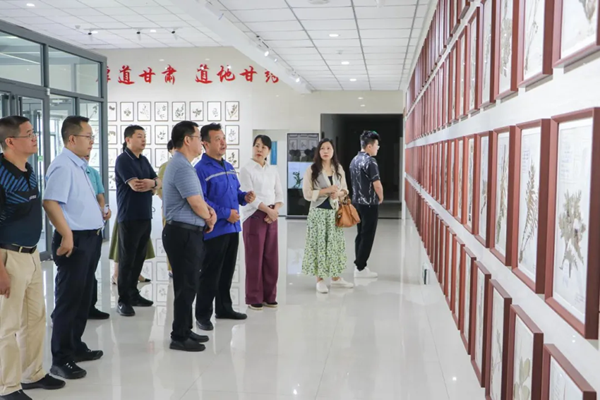 調(diào)研組一行首先在制劑車(chē)間大廳參觀了公司精心制作的中藥材標(biāo)本展示墻,直觀體驗(yàn)近40年厚重的中醫(yī)藥文明“活化石”,對(duì)甘肅省豐富的中藥材資源表現(xiàn)出了濃厚的興趣。