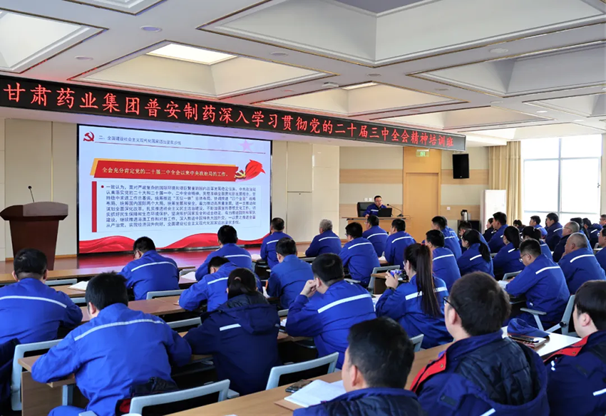 近期,甘肅藥業(yè)集團(tuán)采取現(xiàn)場授課、視頻講座、互動交流、“三會一課”等多種形式,對集團(tuán)公司中層及以下黨員干部全覆蓋、無盲區(qū)、分階段組織開展學(xué)習(xí)貫徹黨的二十屆三中全會精神輪訓(xùn),迅速掀起了學(xué)習(xí)宣傳、貫徹落實(shí)黨的二十屆三中全會的熱潮。參訓(xùn)人員達(dá)到300余人次。