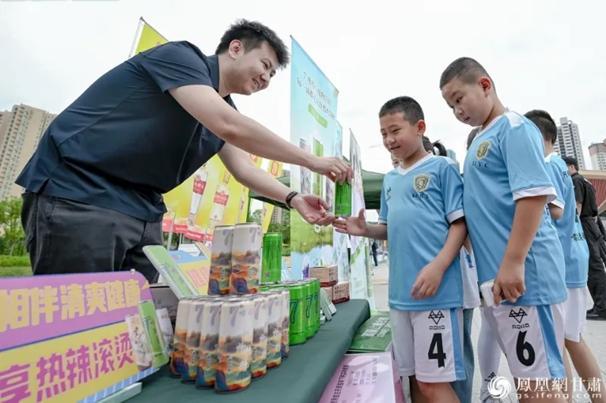 賽場(chǎng)入口處,甘肅藥業(yè)集團(tuán)展區(qū)熱鬧非凡,球迷爭(zhēng)相駐足了解藥食同源新品。甘肅藥業(yè)集團(tuán)運(yùn)營(yíng)有限公司銷(xiāo)售經(jīng)理肖峰說(shuō),今年甘肅引進(jìn)一支中乙球隊(duì),帶動(dòng)了足球賽事的火爆,讓廣大球迷在家門(mén)口觀賞、參與比賽的期待變?yōu)楝F(xiàn)實(shí)。該集團(tuán)將不斷借助高熱度賽事推廣本土企業(yè)的代表性產(chǎn)品,讓甘肅好藥走向全國(guó),惠及更多人。