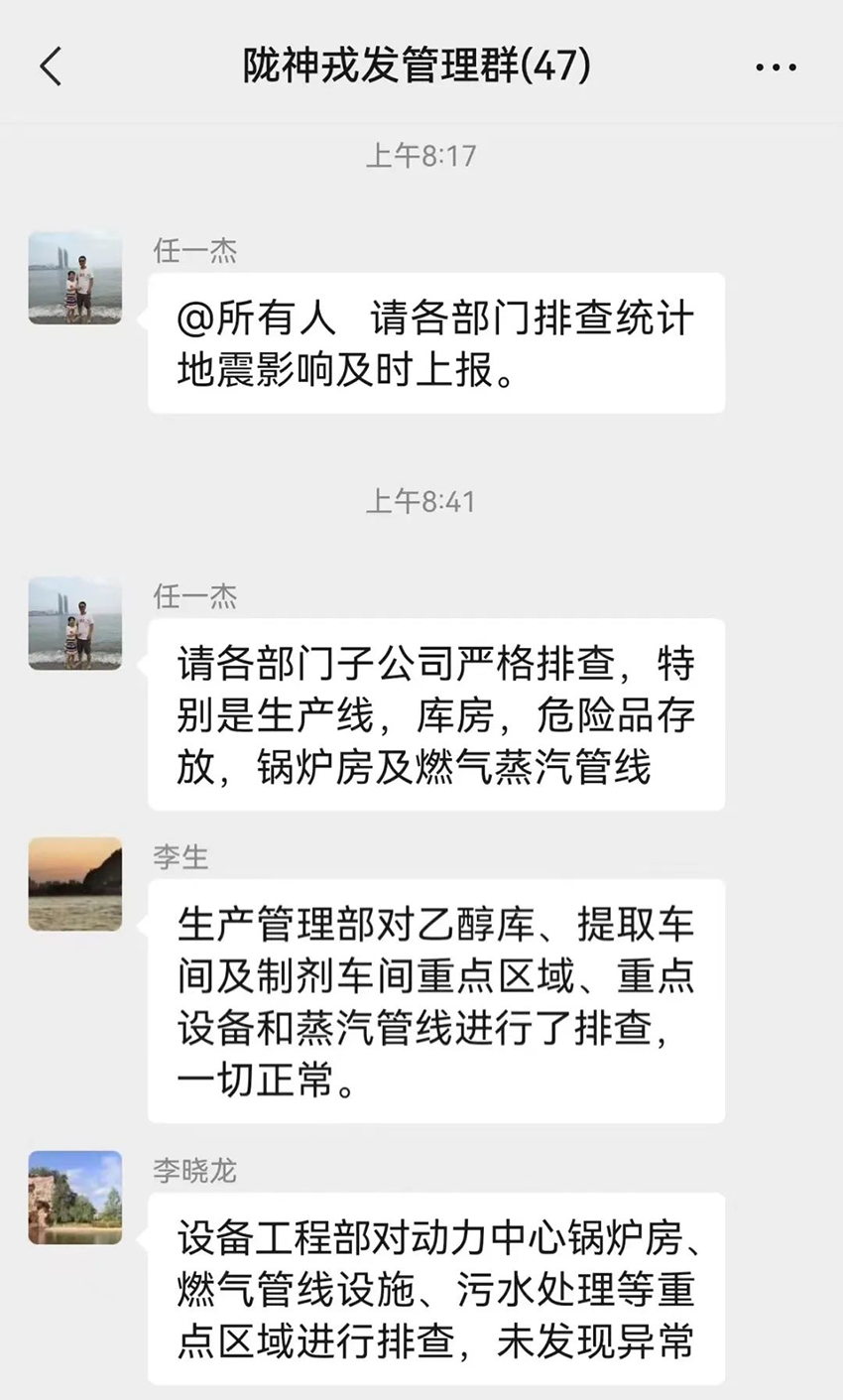 甘肅積石山縣地震發(fā)生后,隴神戎發(fā)認(rèn)真貫徹落實(shí)集團(tuán)公司部署要求,結(jié)合公司實(shí)際,積極開展隱患自查排查工作。12月19日下午公司安委會(huì)邀請(qǐng)?zhí)m州高新區(qū)安監(jiān)局及專家一行5人,對(duì)公司質(zhì)檢辦公大樓、動(dòng)力中心、污水處理站、乙醇庫(kù)、前處理提取車間、固體制劑車間等各個(gè)單體的建筑結(jié)構(gòu)、外墻裂縫、廠區(qū)道路塌陷等情況進(jìn)行詳細(xì)檢查,經(jīng)檢查未發(fā)現(xiàn)因地震引起的安全隱患,公司運(yùn)營(yíng)一切正常。