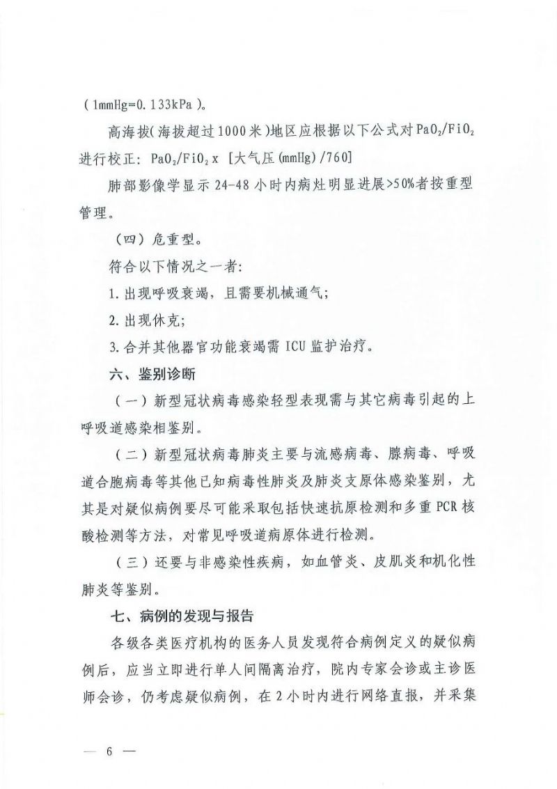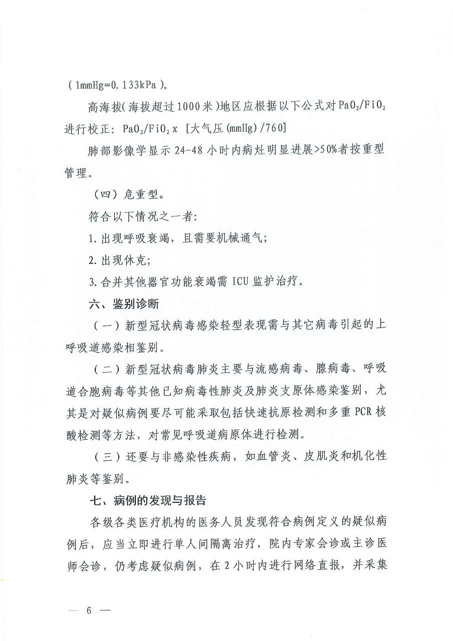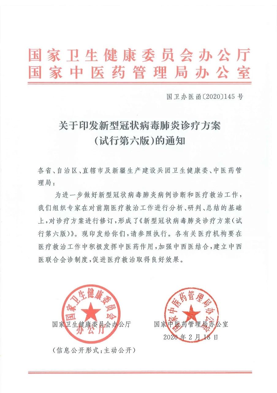 關于印發(fā)新型冠狀病毒感染的肺炎診療方案(試行第六版)的通知