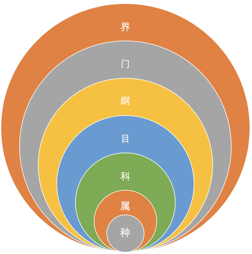 一般在生物學(xué)上,按照階元系統(tǒng)進(jìn)行分類,通常包括七個(gè)主要級別:界、門、綱、目、科、屬、種。種是基本單元。從界到種,范圍逐步縮小。