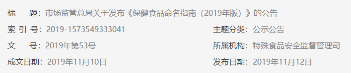 根據(jù)《中華人民共和國食品安全法》及《保健食品注冊與備案管理辦法》等規(guī)定,市場監(jiān)管總局制定了《保健食品命名指南(2019年版)》,現(xiàn)予發(fā)布。