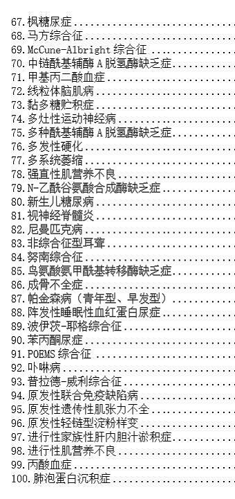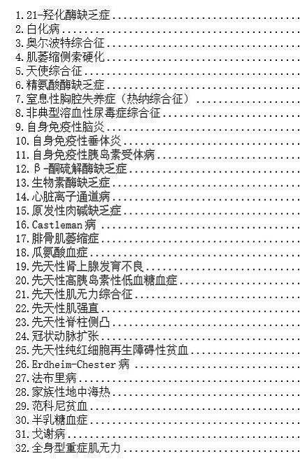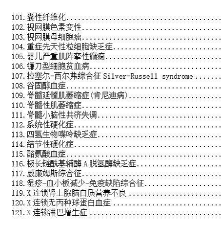 以下為121種罕見病病種目錄: