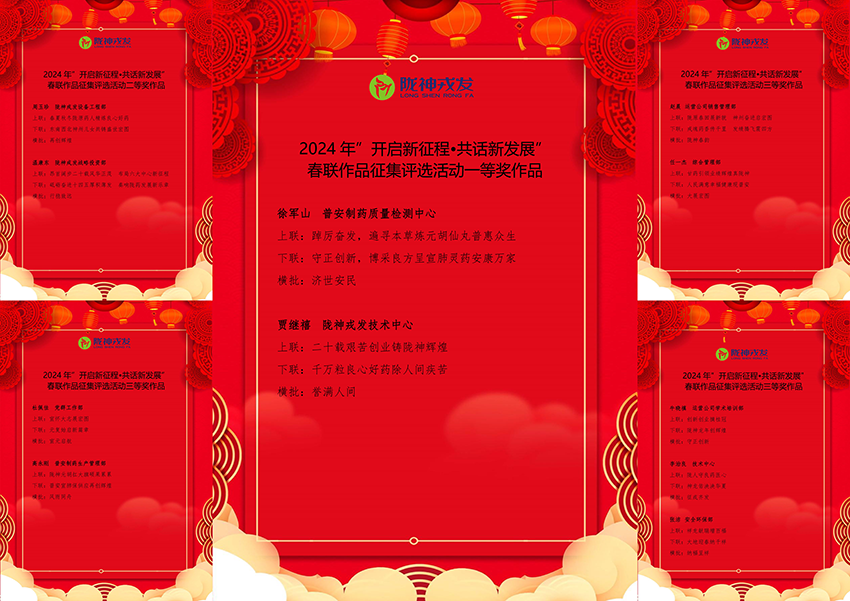 此次春聯(lián)征集以“頌隴神發(fā)展、賀農(nóng)歷新春”為主線,圍繞隴神戎發(fā)發(fā)展,以贊頌隴神戎發(fā)改革發(fā)展大好形勢(shì)、對(duì)比過(guò)去與現(xiàn)在改革與發(fā)展的巨大變化、倡導(dǎo)廣大員工激情創(chuàng)新團(tuán)結(jié)奮斗的良好風(fēng)尚、贊揚(yáng)對(duì)隴神戎發(fā)發(fā)展做出突出貢獻(xiàn)的骨干人物或勞動(dòng)模范等為主題?;顒?dòng)開展以來(lái)得到了公司本部以及各所屬企業(yè)的高度關(guān)注和參與,共收到優(yōu)秀創(chuàng)作作品28副。最終,活動(dòng)共評(píng)選出一等獎(jiǎng)2名,二等獎(jiǎng)2名,三等獎(jiǎng)7名。