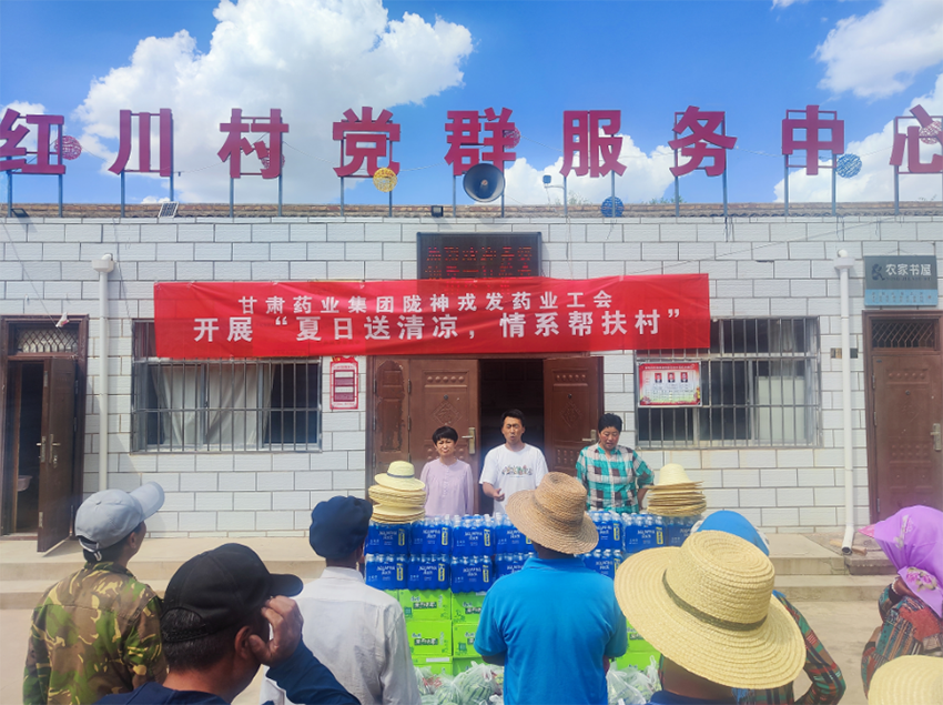 持續(xù)高溫天氣,置身室外仿佛被熱浪包圍,然而眾多公益崗人員、村兩委、社長仍堅(jiān)守崗位,頂著烈日,用自己辛勤的汗水換來干凈整潔的農(nóng)村生活環(huán)境。為關(guān)心關(guān)愛一線工作人員,7月24日下午,隴神戎發(fā)藥業(yè)工會(huì)在幫扶村開展“送清涼”活動(dòng),為他們送上防暑降溫用品,向堅(jiān)守在一線的他們致以敬意。