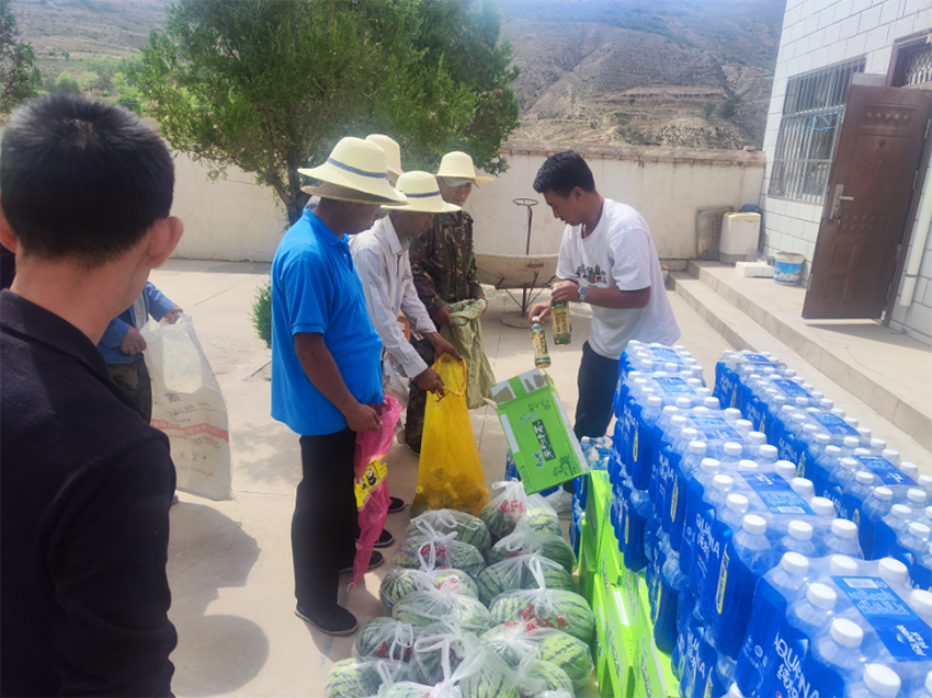 活動(dòng)現(xiàn)場,隴神戎發(fā)駐村干部為幫扶村公益崗人員、村兩委、社長們送上了宣肺止嗽合劑、礦泉水、西瓜等物品,對(duì)長期頂著烈日依然上路作業(yè)、巡林護(hù)林的人員送去慰問和感謝,并叮囑大家在高溫天氣下勞動(dòng),要合理安排作業(yè)時(shí)間,隨身攜帶消暑降溫用品,及時(shí)到陰涼處休息、飲用防暑藥品。